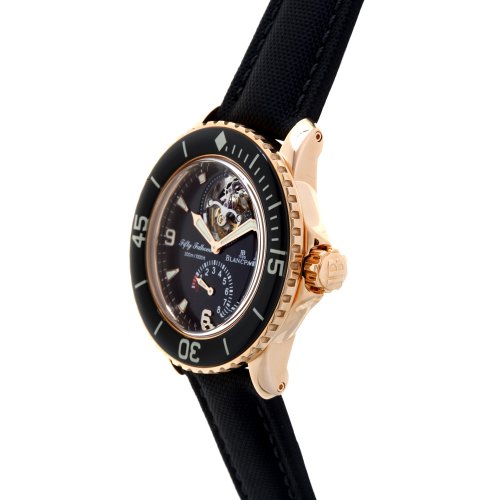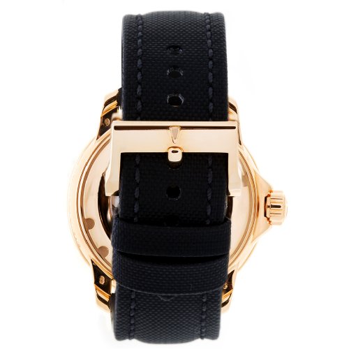 - Red dial with luminous hands and hour markers; gold-tone outlined sub dials; 18k gold-plated stainless steel screw-down protective cap on crown and unidirectional bezel